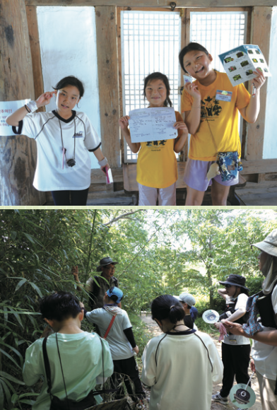 천은사 둘레길 탐방을 끝으로 여름 캠프가 마무리되었어요. 대원들은 탐사 일지를 적고 기념사진을 찍으며 이틀 간의 여름 캠프를 기록했습니다. 2024년에 이어 두 번째 여름 캠프에 참가한 뿜뿜 팀의 나효주 대원은 “풀숲에 뛰어다니는 방아깨비와 무당거미, 톱사슴벌레 암컷 등을 발견했던 야간 탐사가 가장 기억에 남는다”고 했어요. 이어 “반달가슴곰과 곤충에 관한 새로운 지식을 얻고, 지리산 경치를 감상해서 좋았다”고 소감을 전했습니다.