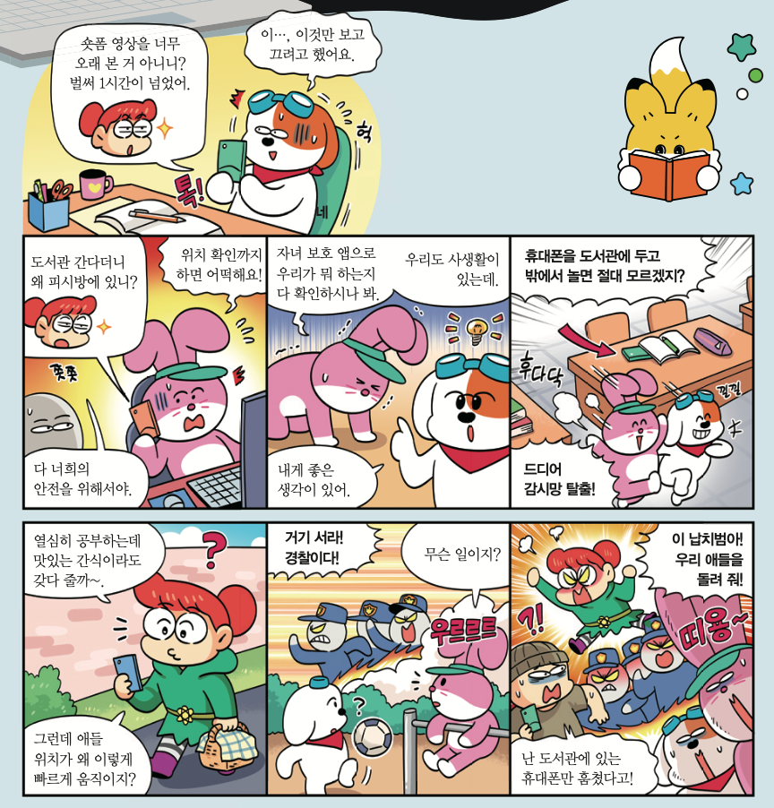 숙제하려고 스마트폰으로 검색하다가 시간제한이 걸려 화면이 꺼지는 경험을 해 본 적 있나요? 유튜브를 보던 중에 보호자한테 전화가 와서 “이제 그만 봐”라는 말을 들었던 경험은요? 이는 모두 ‘자녀 보호 앱’을 사용하는 어린이들이 겪은 일이에요.