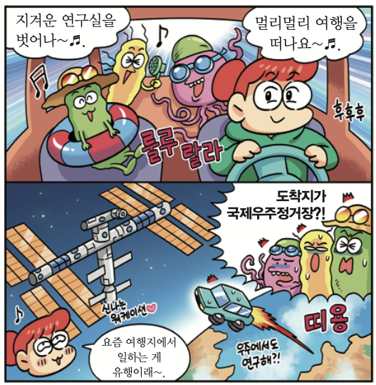 우리 장에 있는 대장균이 우주로 향했다는 소식이 들려왔어. 왜 우주로 간 걸까? 우주 비행사들이 위험해지는 건 아닐지 걱정돼!
