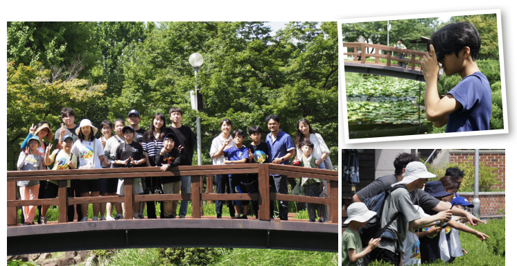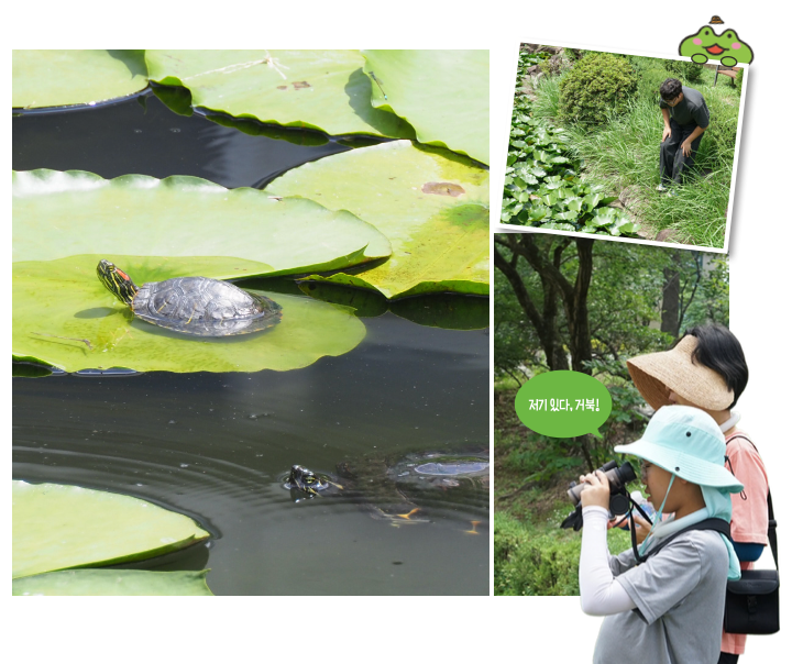 지구사랑탐사대 대원들이 목을 쭉 빼고 연꽃이 가득한 연못을 뚫어져라 쳐다봤어요. 연꽃들 사이로 고개를 내민 거북을 찾으려고 했지요. 7월 26일 지구사랑탐사대 대원 18명은 시민과학풀씨 프로젝트 팀인 ‘리버쉘’ 팀의 연구에 참여하기 위해 경북대학교 연못에 모였어요.