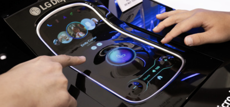 마지막으로 어린이 기자단은 2009년, 우리나라 최초로 OLED TV를 내놓은 LG 디스플레이 전시관으로 향했어요. 전시관 입구에는 모형 자동차 가 있었어요. 차에 탄 뒤 버튼을 누르자 천장에 숨어 있던 디스플레이가 나왔어요. 크기가 57인치나 되는, 영상통화를 할 수 있는 디스플레이입니다. 이제 차 안에서도 큰 디스플레이를 볼 수 있는 날이 머지않은 것이지요.