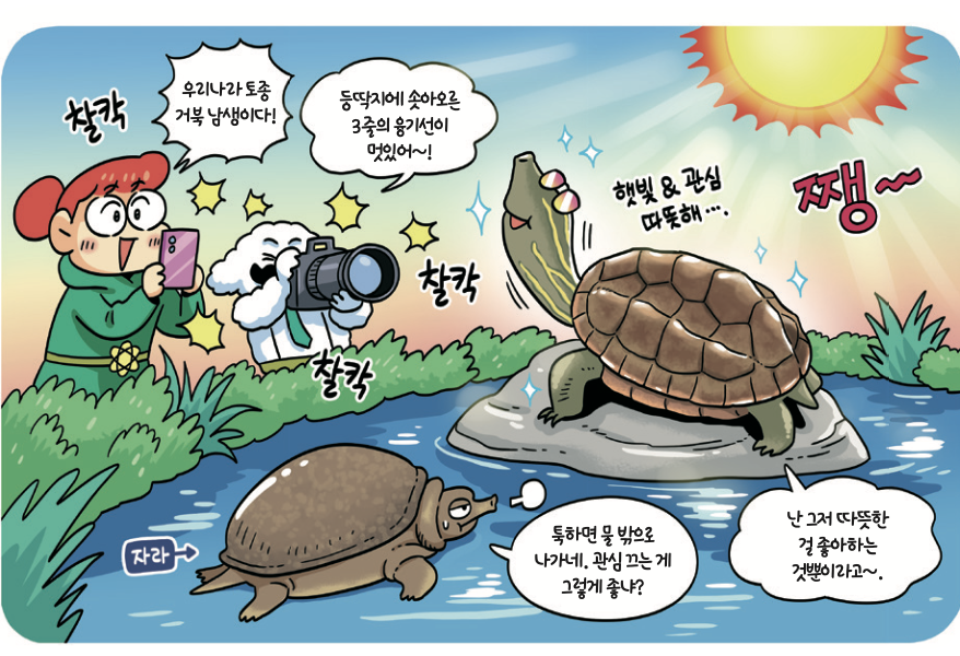 우리가 보는 전자기기 화면엔 액체와 고체의 성질을 둘 다 가진 물질이 숨어 있어. 이러한 물질의 상태를 뜻하는 액정상에 대해 설명해 줄게. 오랫동안 우리나라에 살아온 토종 거북 남생이에 대해서도 알아보자!