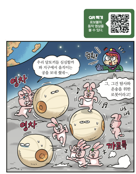 연구팀은 내가 사람이 가기 힘든 곳을 대신 탐사하길 기대해. 난 달 착륙선에서 굴러 나와 분화구 속을 살피고, 무인 드론에서 발사돼 지구의 재난 현장을 조사할 수도 있지. 가파른 분화구나 울퉁불퉁한 잔해 사이를 넘어지지 않고 다니려면 내 동그란 몸이 제격이니까. 내 몸속엔 센서, 카메라, 시료 채취 도구 등의 장비도 실을 수 있어. 나 같은 로보볼 여러 대가 함께 움직이면 낯선 지형을 조사하고, 재난 생존자를 찾는 데 큰 도움이 될 거야.