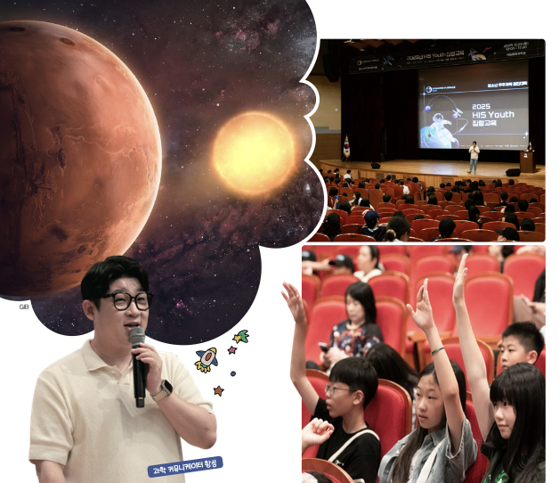 화성은 자전 주기가 약 24시간 37분이고 자전축도 25° 기울어져 있어 지구와 유사한 점이 많아요. 그래서 생명체가 있을 거라고 예측돼 왔어요. 항성은 “화성에서 스스로 문제를 해결할 수 있는 시스템을 개발해야 한다”고 말하며 강연을 마무리했습니다.