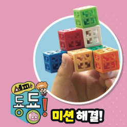 만화에 나온 모양 조각을 블록으로 직접 만들어 미션을 해결했어요.