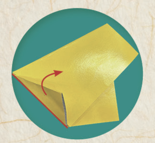 ② 종이의 가장자리를 따라, 왼쪽 아래 부분을 위로 접어 올려요.