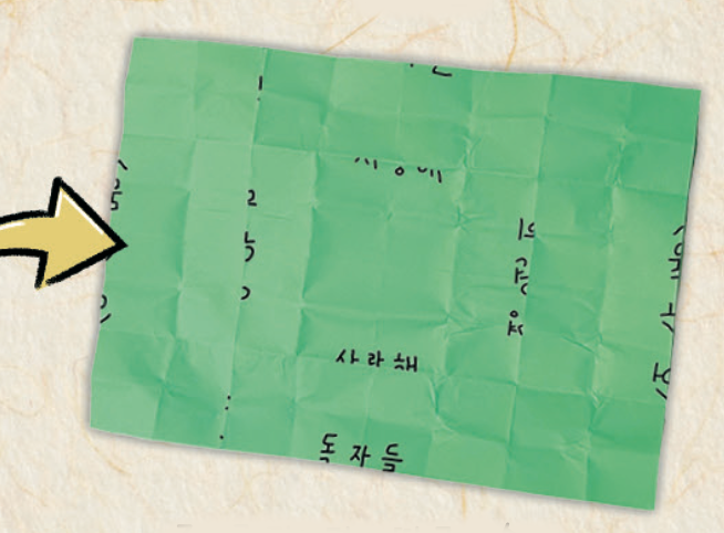 종이를 펼치면 어떤 글이 숨어 있는지 아무도 모를 거예요. 편지 내용은 무엇이었을까요?
