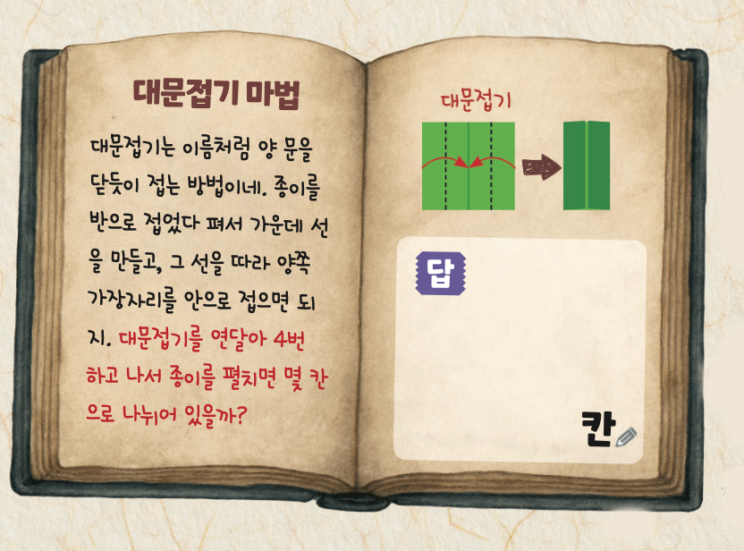네 번의 ‘대문접기’ 주문을 걸면, 안에 숨긴 글자가 감쪽같이 사라진다!