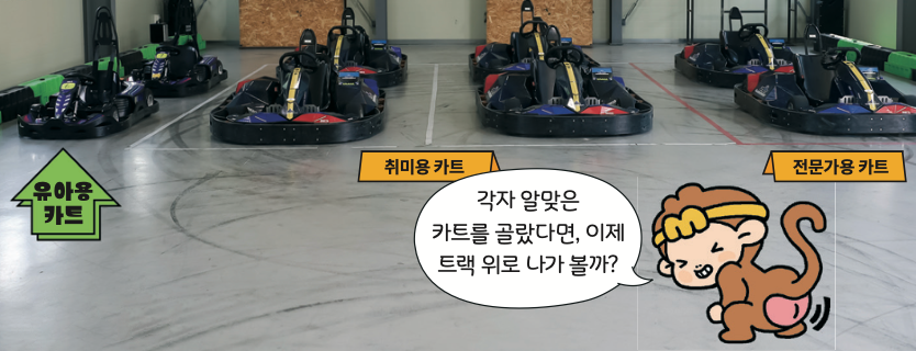 키와 실력에 따라 운전할 수 있는 카트의 종류가 달라.