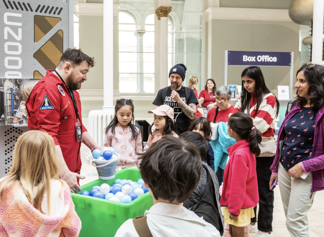 1 2025년 개최된 에든버러 과학축제 2025에서 어린이들이 체험 프로그램을 즐기는 모습.