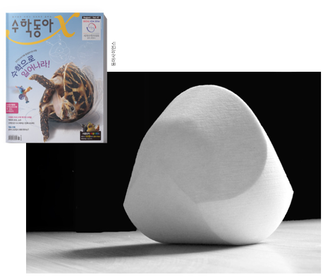 보통 오뚜기는 아래에 무거운 물질을 채워, 스스로 일어나는 성질을 갖추는데요. 곰복의 경우 내부의 밀도가 균일하다는 게 특징이죠. 곰복 연구는 수학동아 2013년 8월 표지를 차지한 적도 있습니다. 기자가 인터뷰 섭외 메일을 보내자, 이 사실을 기억하고 있던 도모코스 교수가 “이전 연구를 크게 다뤄줘 고마웠다”고 말했죠.