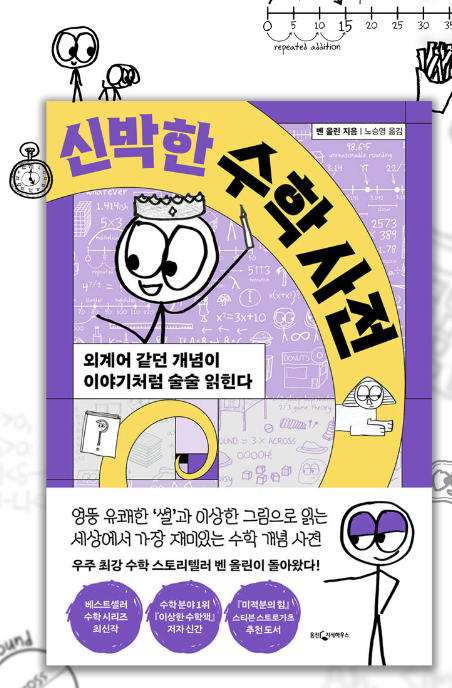 그런 까닭에 수학 성적을 신경 쓸 필요 없는 지금, ‘신박한 수학 사전’을 만난 것이 오히려 다행스럽다. 이 책은 ‘이상한 수학책’ 시리즈의 저자이자 세계적인 수학 스토리텔러인 벤 올린의 최신작이다. 이젠 정말 수학의 개념과 공식을 마음 편히 이해하면 그걸로 충분하다. 이 책의 수학은 빨리 문제를 풀어서 좋은 점수를 받아야 한다고 닦달하지 않는다. 그 대신 이제 수학을 외국어처럼 새로운 언어로 읽어보자고 권한다.